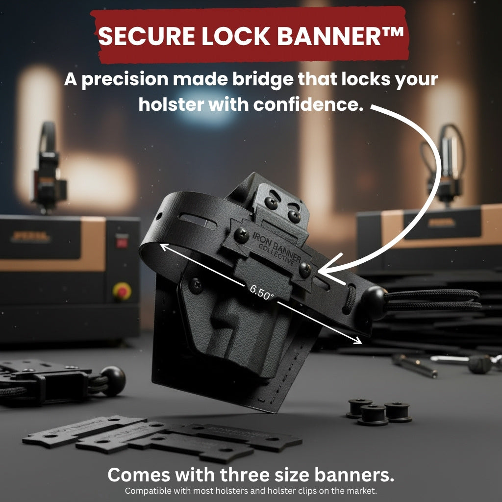 The Arlington Project™ includes three Secure Lock Banners™ — small, medium, and large — engineered to lock your holster clip in place. This bridge-style system keeps your IWB holster rock-solid, eliminating movement and ensuring a fast, precise draw.