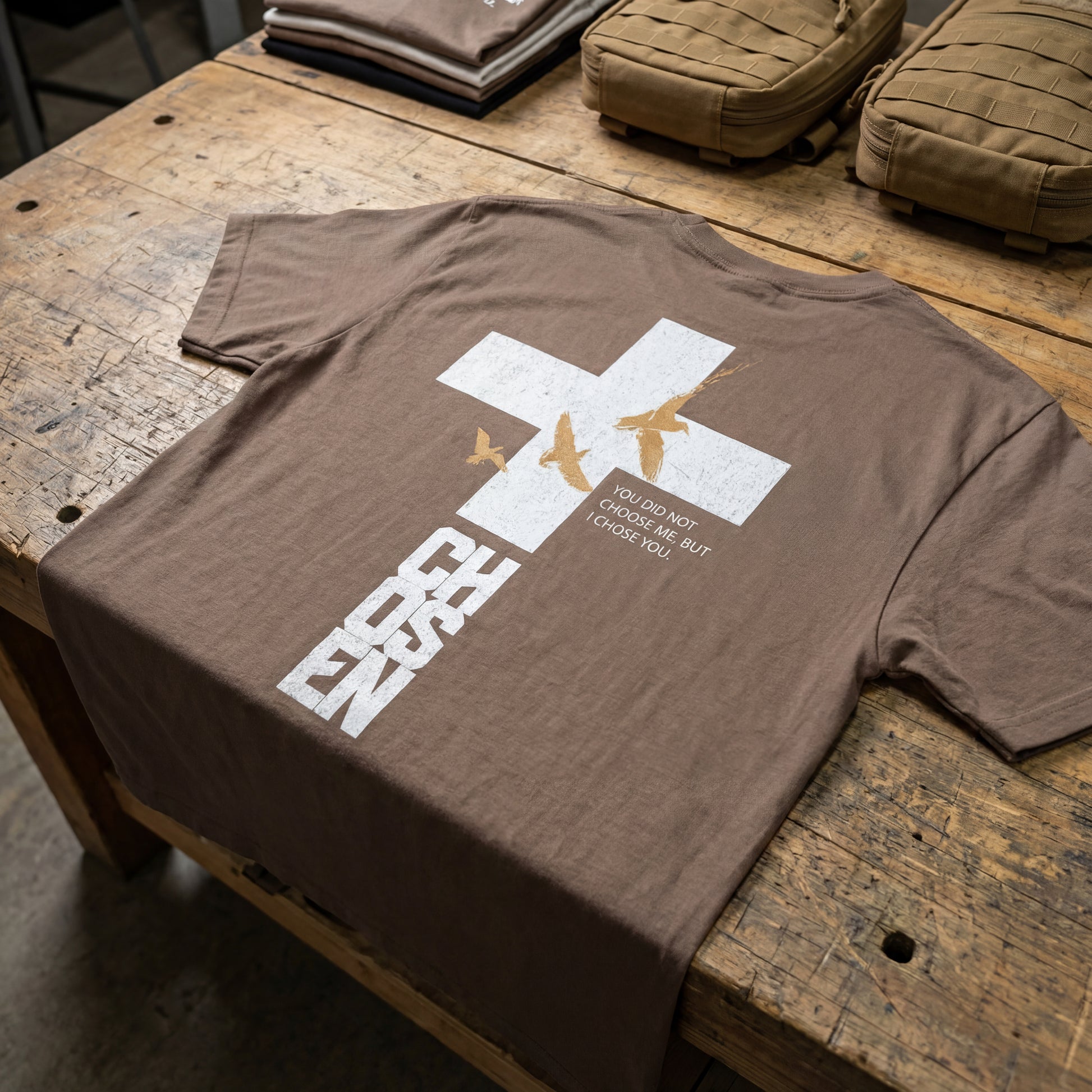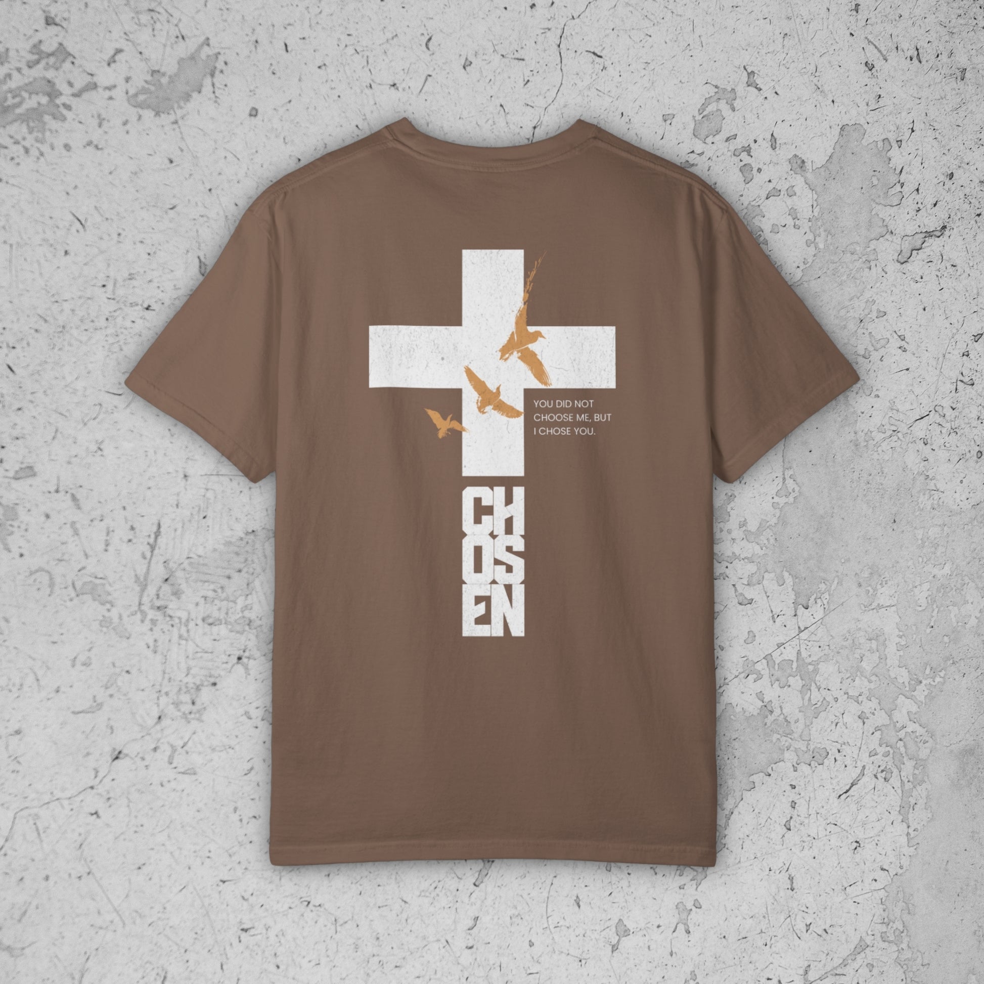 The Chosen Tee (John 15:16) is a bold declaration of identity and calling — rooted in Christ’s words: “You did not choose Me, but I chose you.” This piece is built for those who walk with conviction, carry purpose, and stand firm in truth.