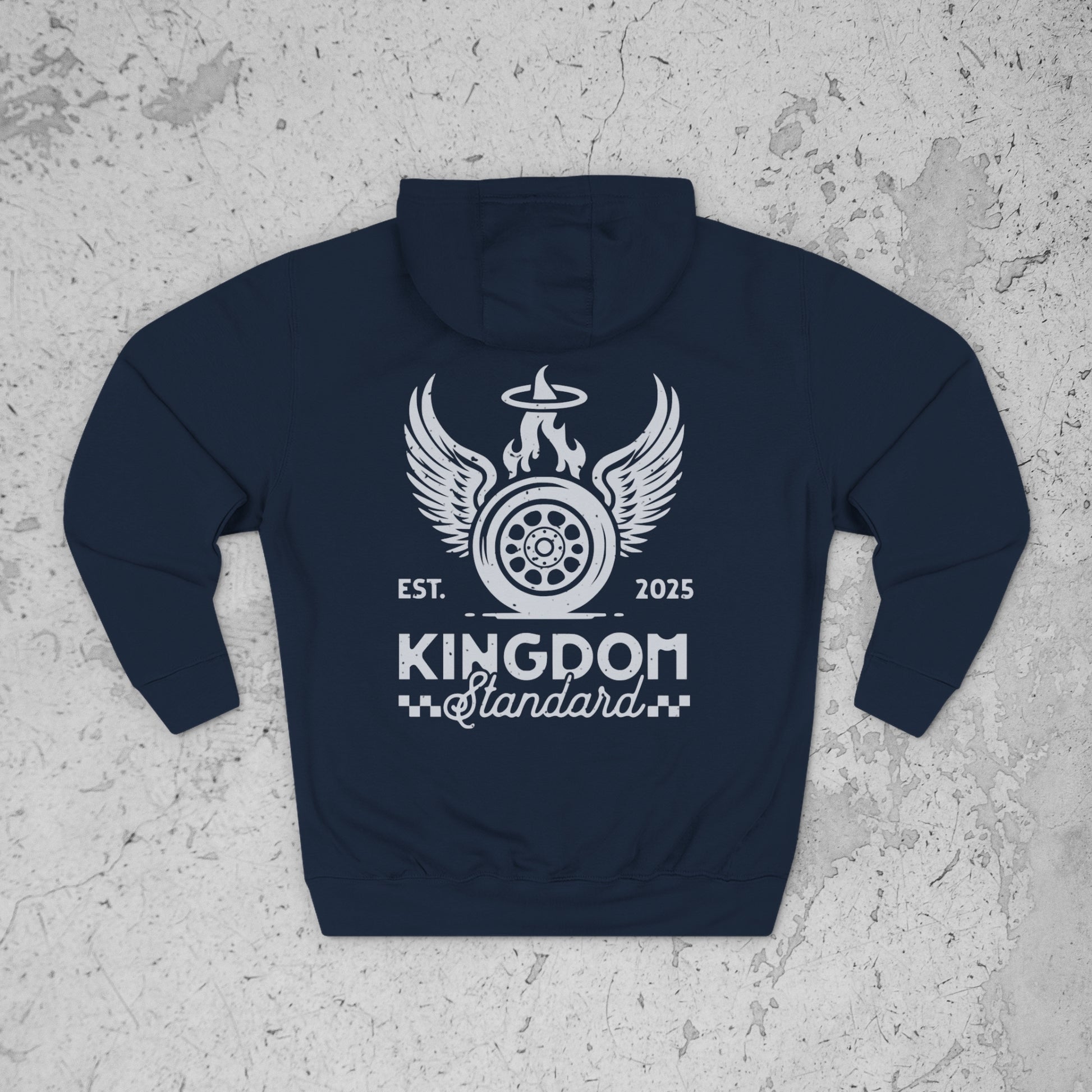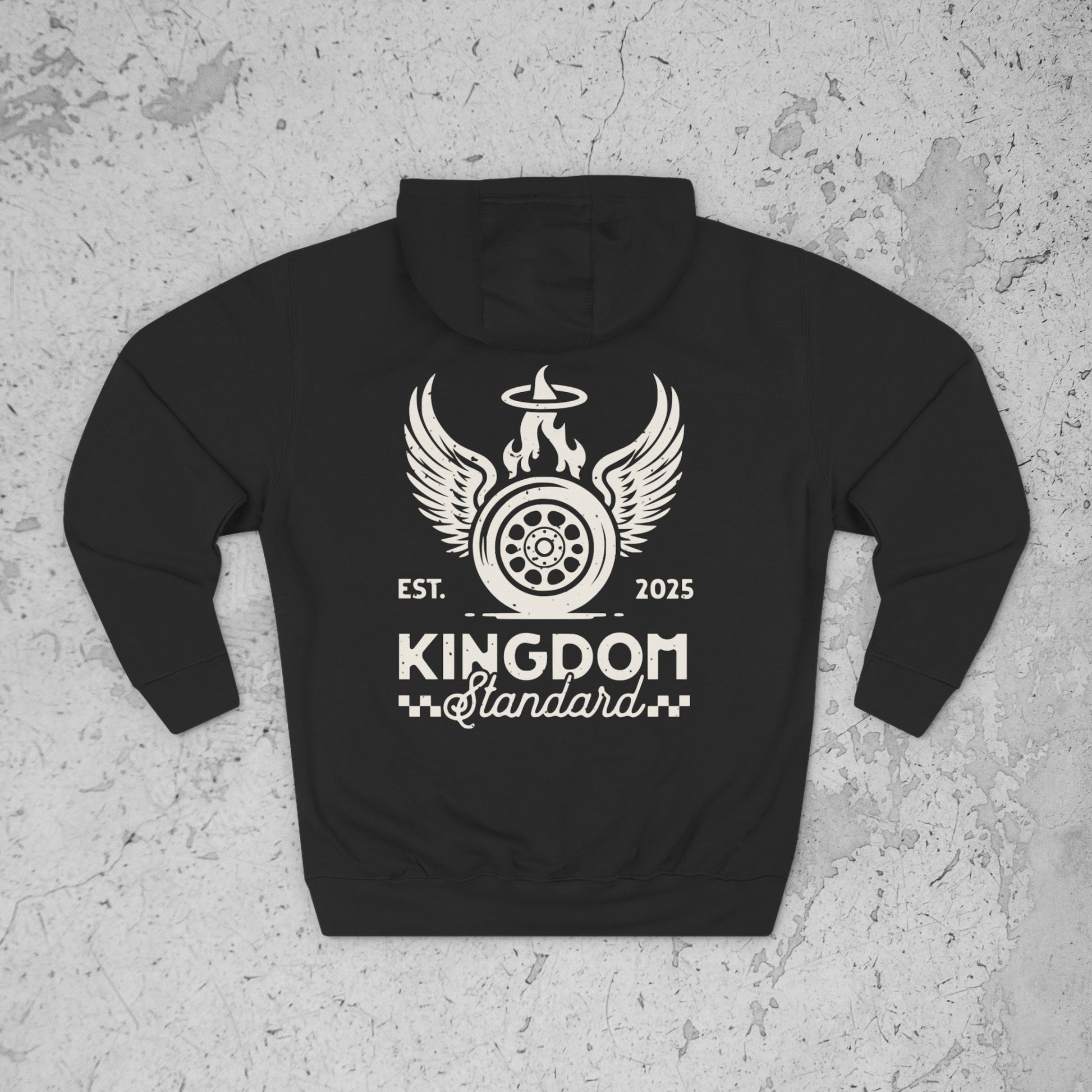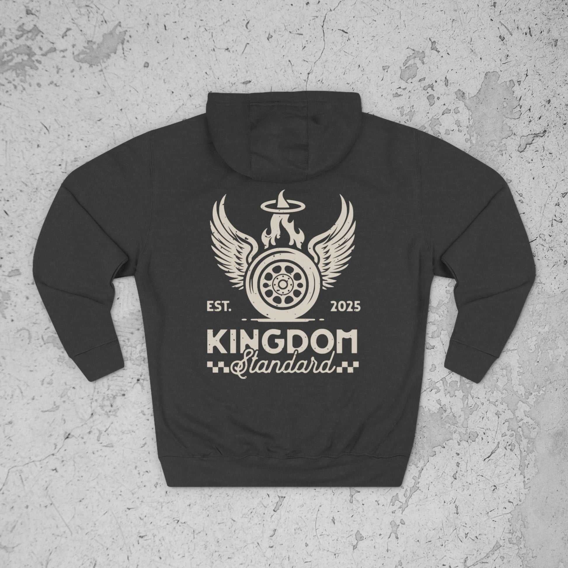 The Wheels of Fire Hoodie represents motion, power, and faith in action — a design forged around ignition, momentum, and disciplined forward movement. Built with a raw, mechanical presence, this piece reflects strength under control and purpose in motion. The Wheels of Fire graphic carries an industrial, biker-driven energy that aligns with the Kingdom Standard ethos: intentional, restrained, and uncompromising. This hoodie is made for those who refuse stagnation and move forward with clarity, conviction, and purpose.
